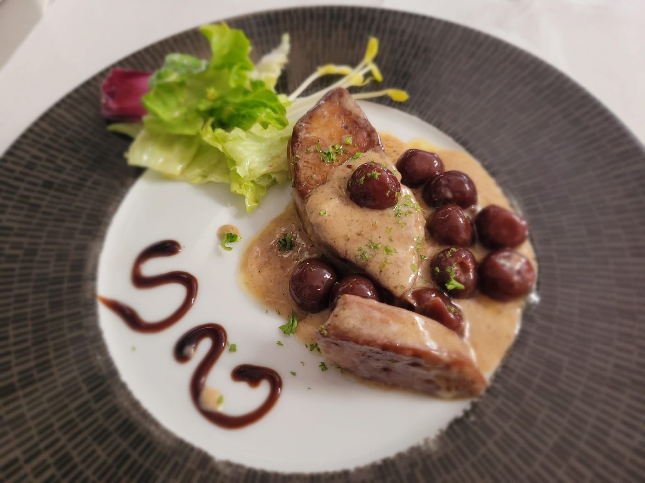 Escalope de foie gras aux griottes et vinaigre balsamique