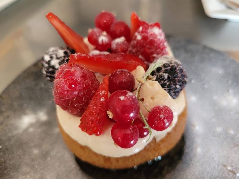 - Rouge baiser : sorbets fraise, cassis, framboise, crème fouettée 9 €